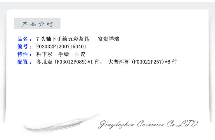 7頭釉下手繪五彩茶具--富貴祥瑞