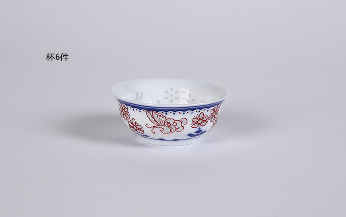 8頭青花釉里紅茶具蝶舞
