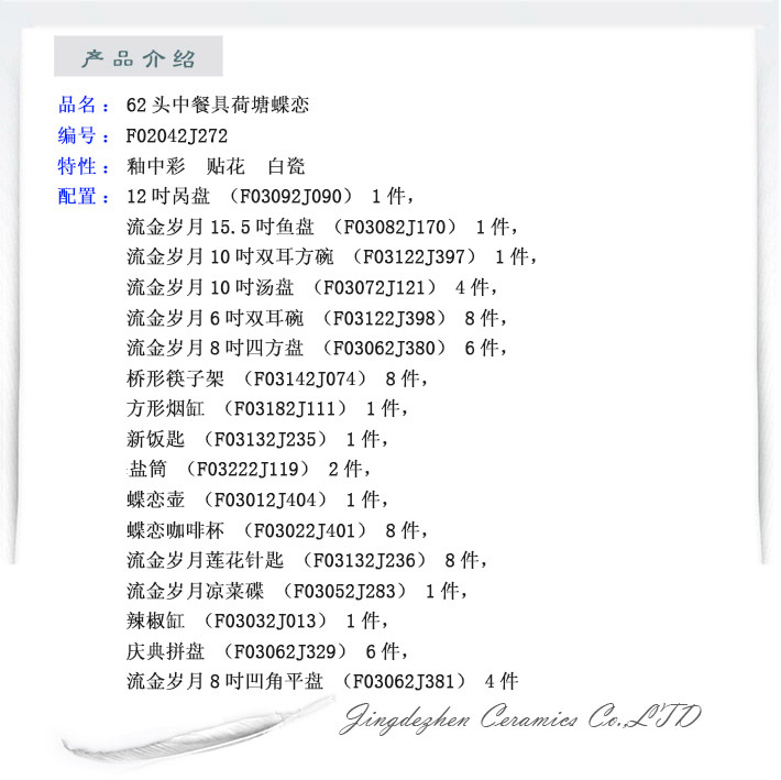 62頭中餐具荷塘蝶戀