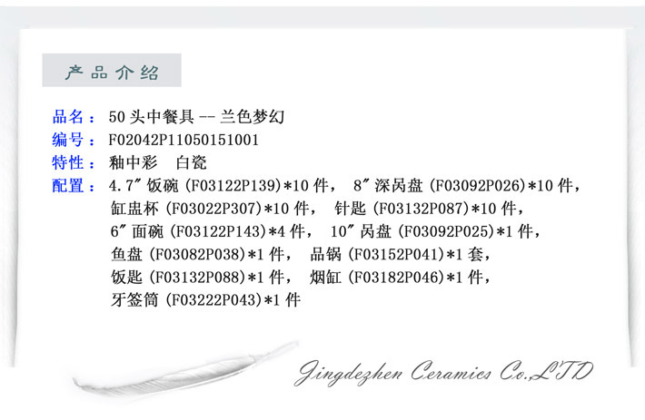 50頭中餐具--蘭色夢幻