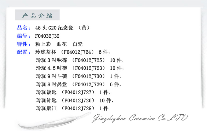 45頭G20紀念瓷(黃)
